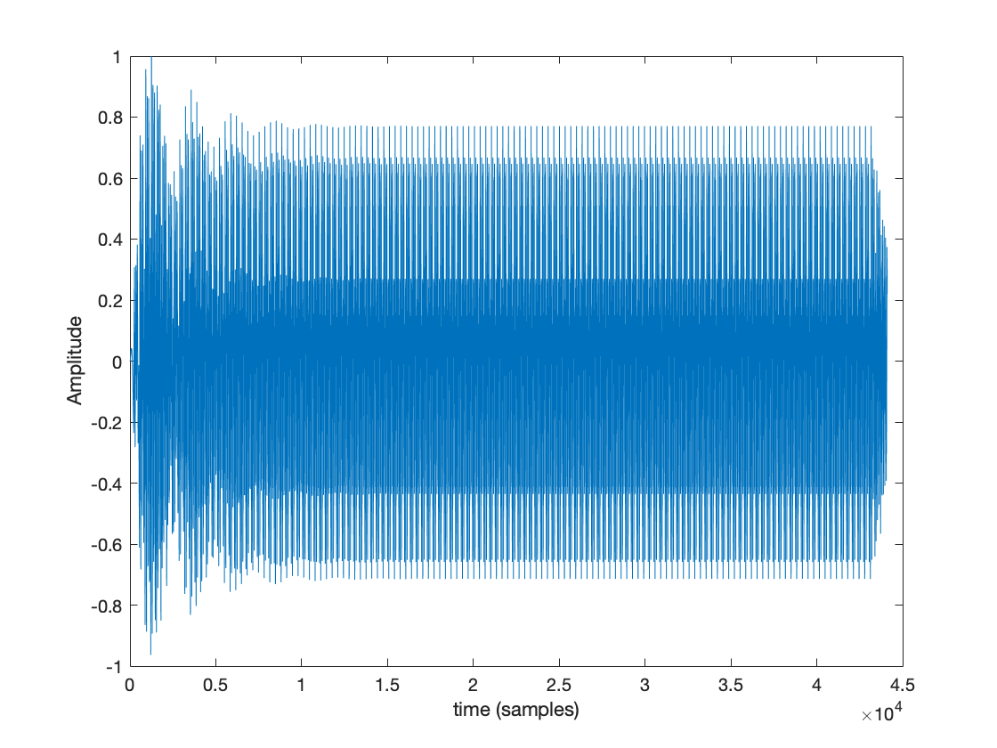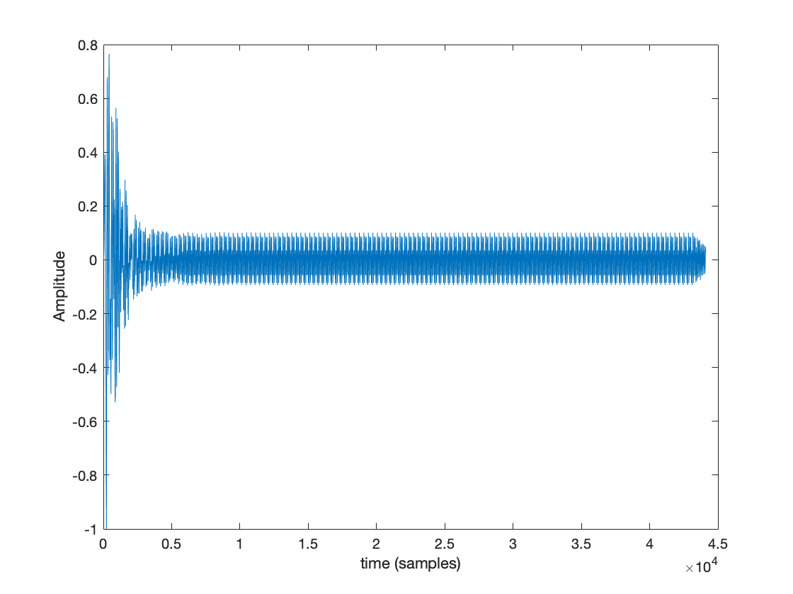 After completing the lab and implementing the different excitement types, the next stage was to focus on was creating plosives. Plosives are as as simple as stopping the sound midway through creating it. The code works by creating an envelope that goes from 0 to 1 over 1/8th of the total samples. This envelope can then be inserted at any point during the system with ones filling in the remaining space. The mouth end is then updated with the value of the envelope multiplied by the segment diameter.