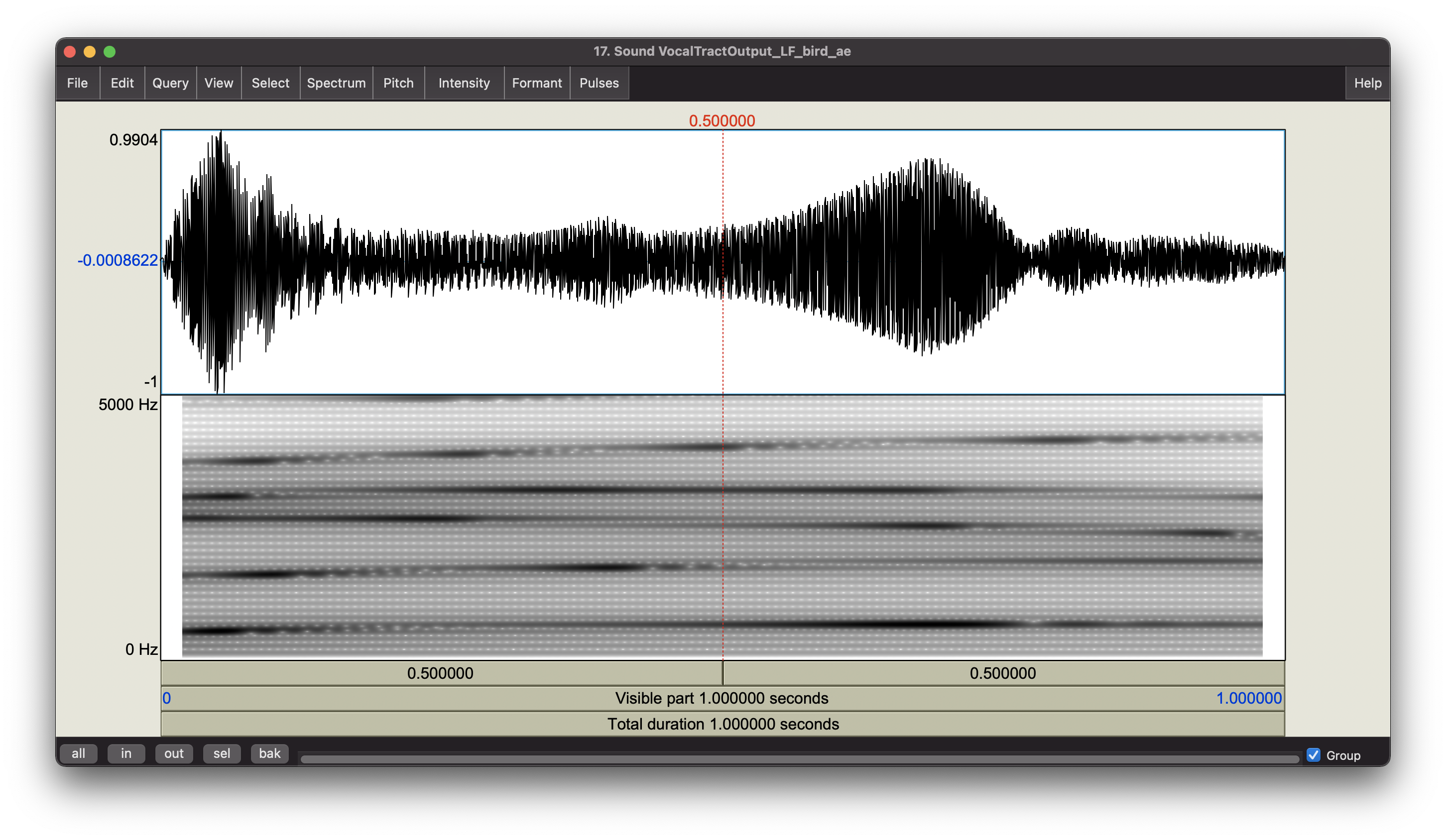 The code produces diphthongs, monophthongs, plosives as well as allowing the use of noise, LF and LF with Vibrato as the excitation. Plosives can be inserted at any pint during the vowel production, and diphthongs can be produced between any two monophthongs. This can produce some diphthongs that would not naturally be produced by the human voice. The table below highlights all the monophthongs (vowels) the system can produce, the other table highlights diphthongs the system can produce with the two variables needed to make it sound.